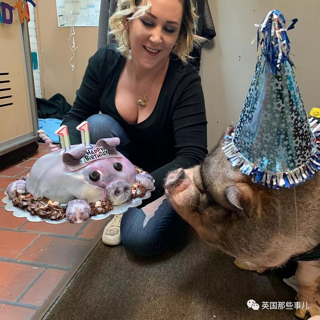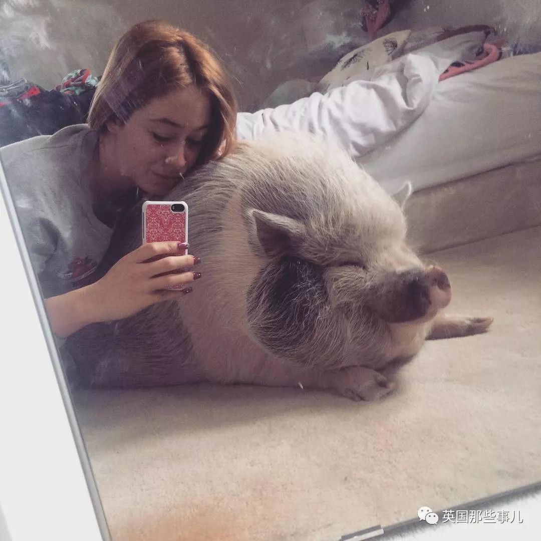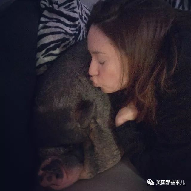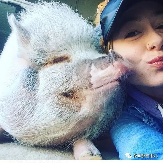 除了从小长大的Bacon之外,她甚至还从别人手中收养了一只因为越长越大而被抛弃的猪猪。