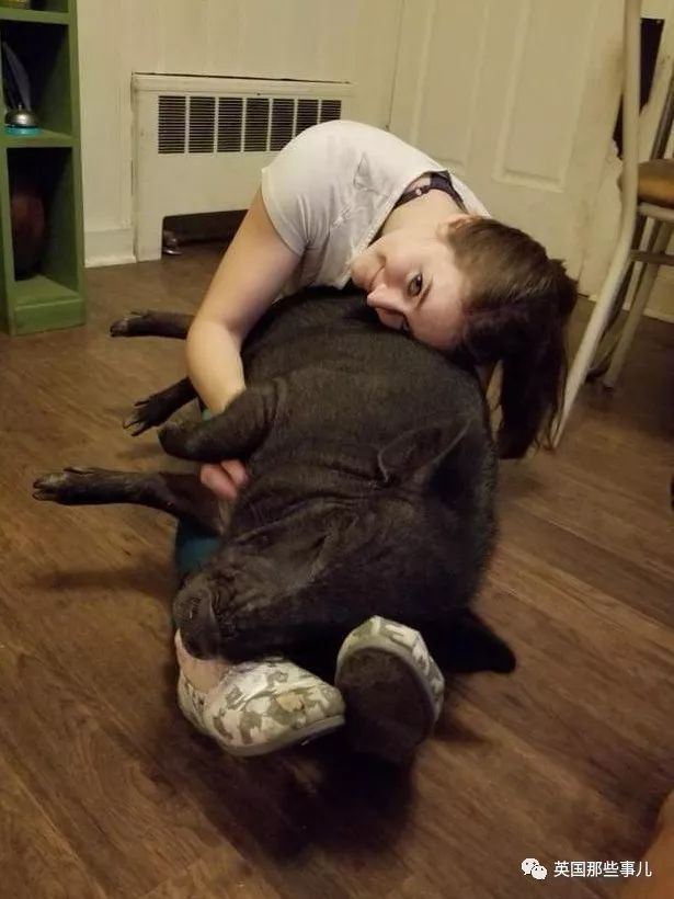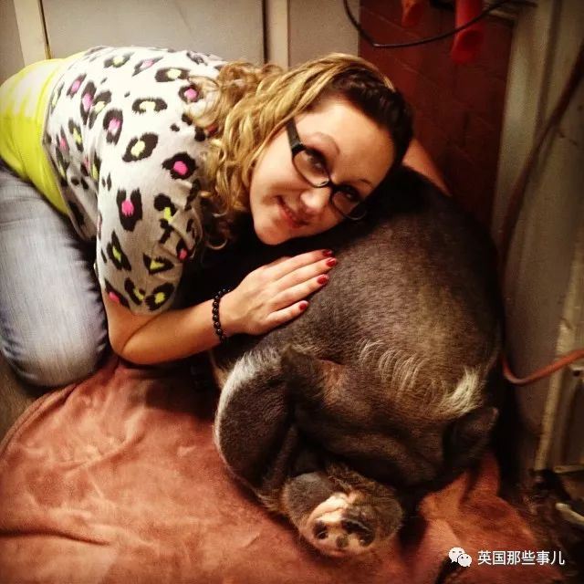 没过几年,Bacon已经长大到Lauren完全抱不起来的那种猪猪,