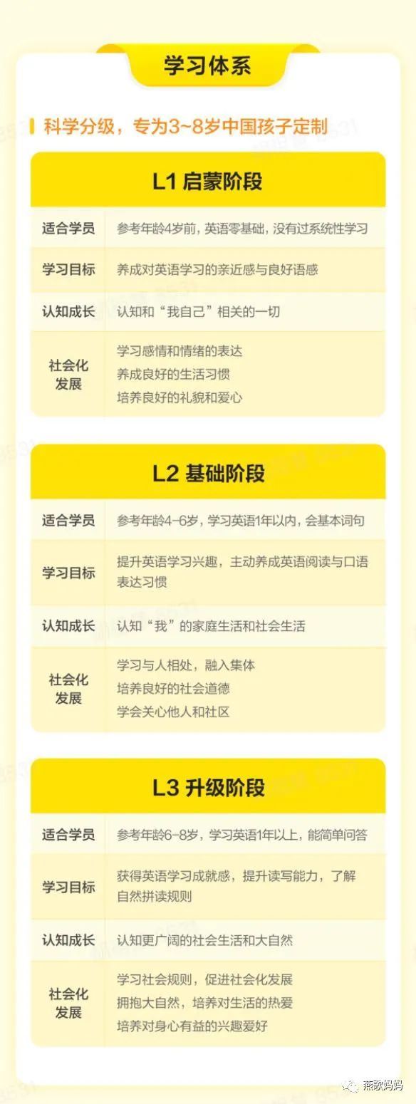 瓜瓜龙英语分为3个级别,帮助孩子从英语语言能力、认知成长、社会化发展三个维度,实现学习效果梯度螺旋上升。