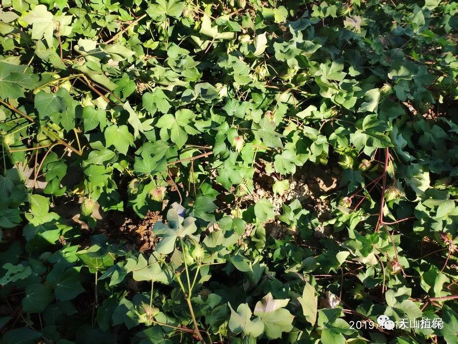由于7月至8月温度高,气候适宜,利于棉花上桃快,水肥不缺,棉桃长的大,尤其是中上部棉铃长的好,即为头重;5月至6月份温度偏低,阴雨天气多,不利于花芽分化,始果节位高,多数棉田始果枝在30厘米以上,腿比较高,即使下部叶枝成桃也好,但腿还是比较高,部分棉田进头水较早,棉株扎根浅,主根分叉,根浅即为脚轻。头重脚轻而致棉株倒伏,天山植保较为认同,这应该是今年棉田倒伏的主要原因。
