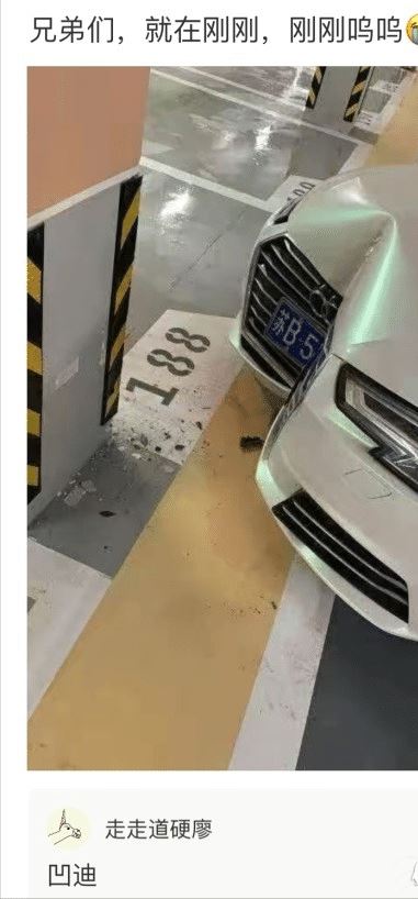 一定是你把油门加的太大了,撞的造型太搞笑了吧。