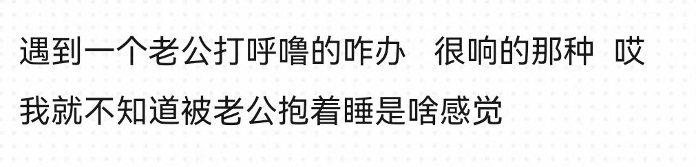 结婚以来就除了他上班值班以外,就没有分开睡,每次他在值班(可能半个月一次)我和孩子两个人睡,我在困一晚上都要醒来两三次。现在怀孕晚期了,虽然不做,有他在身边睡得安稳些。