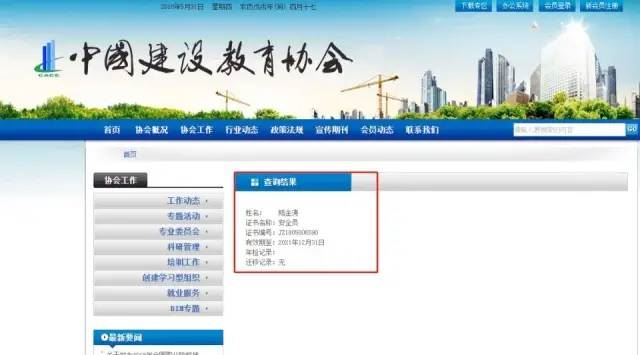 第三步:进入中国建设教育协会官方湖北巴东惊天惨案网站,右侧的《证书查询》