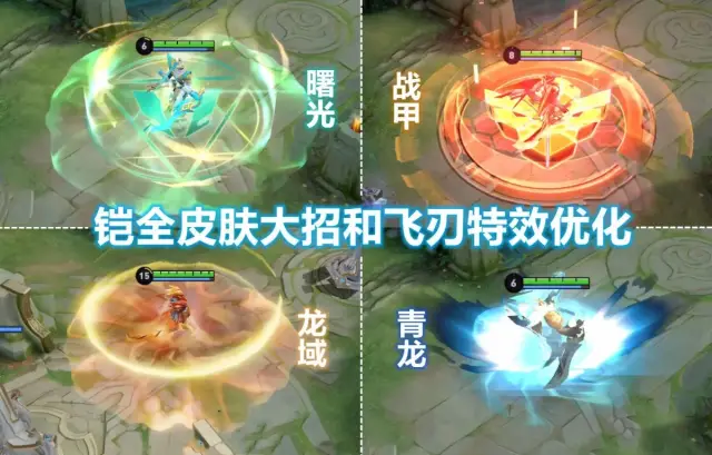 其中机甲皮肤绛天战甲优化的就很不错,技能释放的时候还有闪电出现,拥有体验服的玩家可以率先测试优化之后的效果,铠皇的其他几款也是一样,一技能飞镖都是有变化的。