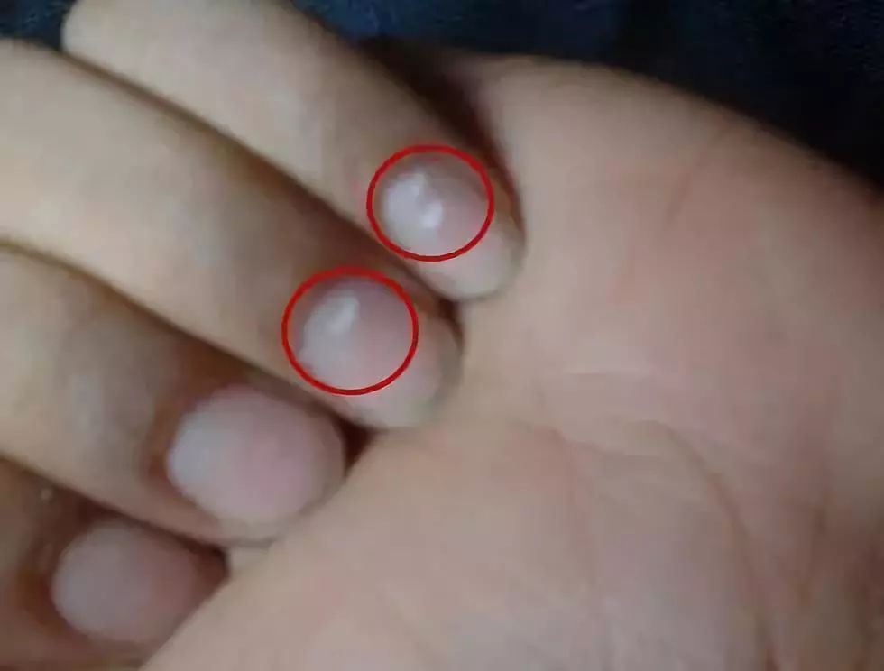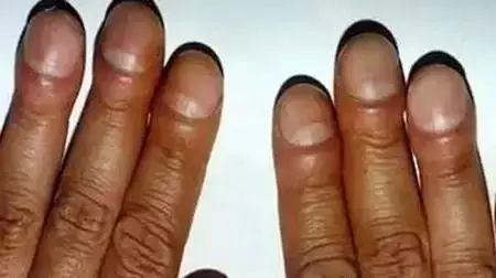 杵状甲表现为指甲末节肥大并向上拱起呈鼓槌状,同时,指尖的甲面弧度会明显增大。