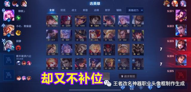 但关键的是游戏内大家都是陌生人,你如果不一选的话,那么就意味着队友先选,队友先选的话你就要补位,看着阵容来选择英雄进行反制,但是有大量的玩家虽然知道这一点,但就是不补位,有一楼恐惧症的同时还不补位,也就是不先选还要和队友抢位置,这就是让人感到匪夷所思。
