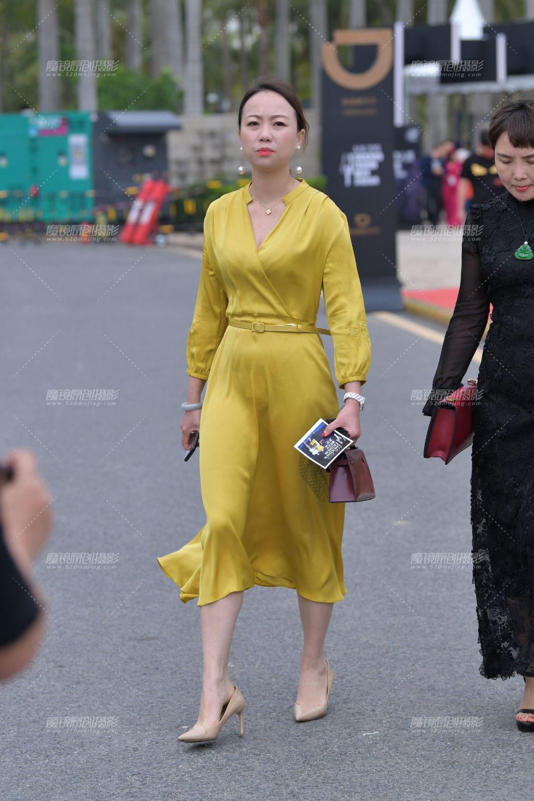 虽说是可以省去下装的搭配,但是鞋子可不能省去,在这里如果存在有搭配休闲鞋想法的人,那我可以毫不犹豫的告诉你该反省一下自己的衣品了,很明显这种风格的吊带长裙只能去搭配高跟鞋了,也只有高跟鞋的女人味和优雅才能驾驭它。姑娘搭配的很小心,她选择了一款百搭款式的白色高跟鞋,其实不能说这款鞋子的造型不好,但在这条裙子面前就显得有点太简单了,要是黑色款式应该可以让效果更好一些的,白色会在气质方面显得会弱一些吧,大家认为呢?