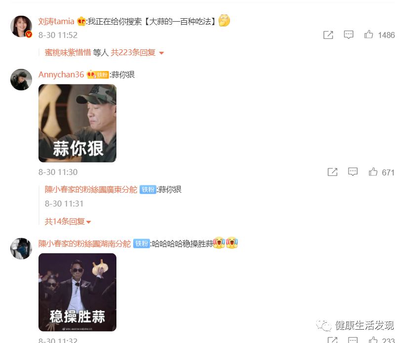从网友们的评论中可以看出,不少网友都玩起了谐音梗,不光打上了“蒜你狠”三个字,还临时组词:稳操胜蒜,看来网友们还真是很有才华了。不过有一个人的留言被置顶到了评论区的首位,这个人不是别人,正是给他寄大蒜的刘涛,刘涛在评论区留言道:我正在给你搜索:大蒜的一百种吃法。