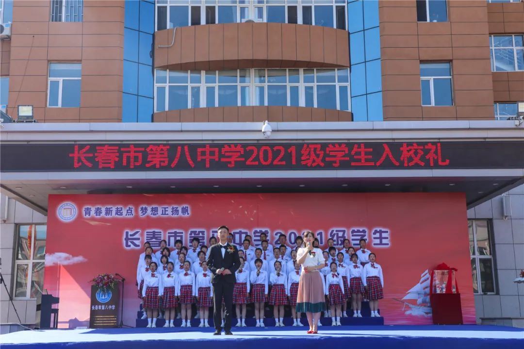 入校礼第八项:师生合唱校歌《八中——梦想开始的地方》。