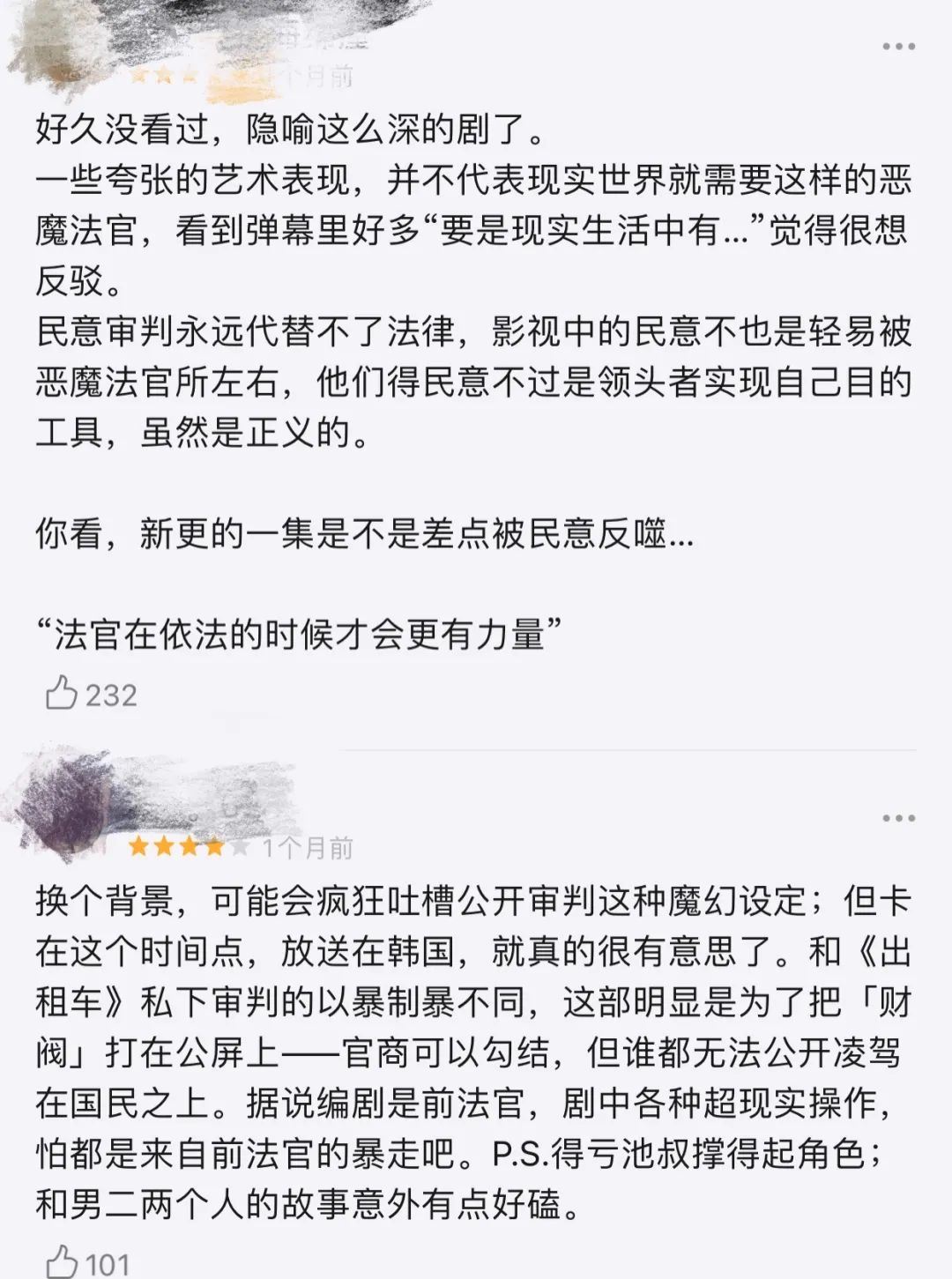 来源:娱乐拆穿姐( ID:yulechaichuanjie)没想到,吴某凡的故事,人家不但拍了,判罚方式还特别大快人心。但男一男二非常好磕,演技在线,身材在线,摄影构图和BGM审美在线。经济?;?,民众失业,仇富煽动纵火恐袭,韩国国内外矛盾加剧,最终酿成“光化门暴动”。而另一边,财阀、法务总长、传媒巨头和以“直播治国”的浮夸总统却沆瀣一气,过着奢华的生活。为了更好地控制舆论,制造为国为民的假象,演员出身的总统推出了不走常规路的“示范法庭”。他不断突破底线,违法程序正义,一边与权贵阶层做斗争刘洋牧师,一边也从不标榜自身正义,反而自认“我就是深渊”。朴珍荣饰演的小白兔陪审法官金佳温,父母因被人诈骗惨死,而他始终心怀正义。受命去耀汉身边“潜伏”,挖出他犯罪的证据,却不由自主向“恶魔法官”靠拢。第三个示范法庭的案例,让人拍案叫绝——简直就是吴某凡的翻版。韩流巨星被起诉性侵,该巨星却觉得是那些女人想上位。检察官提出对巨星进行“物理阉割”。民众也投票判巨星有罪。我的古怪高中2但如果他真的判对其进行物理阉割,那恐怕将来也会被舆论反噬。只判处有期徒刑,但把巨星丢到全部都是性犯罪者的监狱里去。还有欺诈犯逃脱服刑(与最近的《扫黑风暴》孙兴异曲同工)……编剧文宥硕,毕业于哈佛大学法学院,前首尔中央地方法院副法官。2018年,文作家还写了《汉谟拉比小姐》。艺术来源于生活,剧中太多台词都充满了讽刺意味,残酷、真实、切中要害。财阀出事的时候,只要爆出几个大的艺人绯闻就能转移公众的注意力。而耀汉和佳温的日常,就是一个彼此追逐和靠近的过程。总结来说,这部剧男二拿了女主剧本,女一拿了反一剧本。佳温因为长得像耀汉的白月光哥哥而被选中,谁知两人除了皮相之外,善良的灵魂也如出一辙。本着调查的目的又正好受伤,佳温顺理成章(不是)住进了耀汉的大别墅开启同居生活。被掐脖子也要留在这里的理由,一定是因为这人有刘海的样子太吸引人。得知了父母惨案的真相幕后,佳温选择站在“恶魔”这一边。说句实话,这部剧在CP塑造上是有点用力过猛的。很多镜头的起承转合,已经不是在给影迷留空间,而几乎是按头磕的程度。大魔王也难得露出了脆弱又悔恨的神情,只能用喝酒来掩饰内心朴珍荣是男团GOT7成员(王嘉尔队友),以前也出演过《蓝色大海的传说》,演少年李敏镐。能和池晟这样的演员大前辈对戏,是受益良多,进步不小的。之前珍荣以为池晟是“恐怖的前辈”,可从片场花絮来看,真的感觉像是很喜欢和小侄子打闹的叔叔呀。往浅里说,让人磕生磕死的耀温CP,本质仍是讨论人与人情感的连接。很多人不满12集后佳温的反复横跳,觉得他究竟是辜负了耀汉的一片真心。那都是在完全代入了耀汉立场后的怒其不争。觉得他是猪队友、拖了耀汉大杀四方的后腿。可即便是耀汉,被误解,被背叛,最后对佳温也是无怨言的作为一个一心向快乐女声nanana善,曾经非常相信法律和体制力量的人,佳温被恶魔吸引,但仍心存疑虑;被现实击碎,但没有一黑到底。与厌世、强大的耀汉相比,像佳温这样善良、纠结的普通人可能才是这个反乌托邦世界最后的希望。“他对这个世界怀疑、愤怒、怜悯、误会,但直到最终,他都没有放弃保留善意“文作家说,无法与人们的愤怒共感的司法系统,不过是机器而已。实现正义的过程中,最重要的从不是正义感,是可能会误判的恐惧感。“以周美青照片自己所相信的正义为基准而愤怒地提高声音呐喊的人们,应该去问问自己,我是否想过自己也存在错判的可能性”阿美想说:
