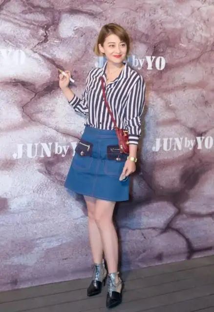 那么如何选择与条纹衬衫相搭配的下装呢?一般来说,如果是黑白条纹衬衫,对下装的颜色门槛会低一些,想要凸显知性美感就可以选择纯色西裤,想要穿平山加奈出休闲风格可以搭配水洗牛仔裤,但切记版型上要与上装相互搭配,我们李珉宇 申爱一般很少选择紧身的版型。下身方面,梅婷选择了一条中长款的牛仔短裙,牛仔短裙的左右各有两个口袋,看起来是一种工装的风格,增加了全身搭配的层次感。