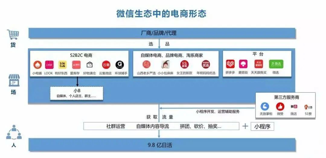 Comercio electrónico sociedad grupo representativo de WeChat y WeChat subprofer es ir al modo de centro,Varios chicos peque?osusted?Y profesional marcas de varios tama?os y canales?O medio,El crecimiento es como WeChat,clase vertical y la gente clic,Basado en el pago de WeChat y applets,Establecer sus propios canales de ventilador de la comunidad y los canales de venta,Próximo, Utilizando puertos de transmisión social disminuyó rápidamente,Ya no están basados en la plataforma tradicional de comercio electrónico centralizado.Se trata de un comercio electrónico social Se da la bienvenida a los modelos desfavorables.Sí,Su modo de plataforma concentrada coexistirán en el futuro.