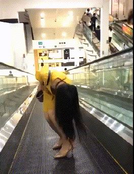 姑娘坐电梯这是怎么了?高跟鞋是卡住了吗?