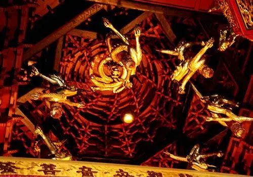 普陀山三宝之一的九龙藻井