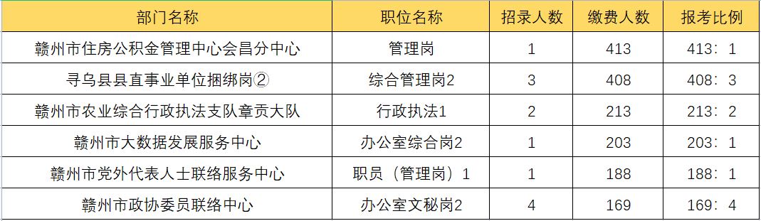 并且,赣州市住房公积金管理中心会昌分中心招录1人,缴费人数413人,报考竞争比最为激烈。