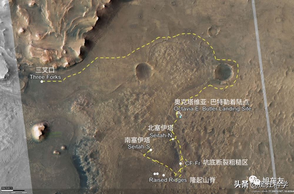南塞伊塔(South Seítah)就在“毅力号”当前采样地点的前方200米处,那里的地势相对比较陡峭,地面主要是由沙丘、巨石和岩石碎片组成,但形成的时间更为古老,