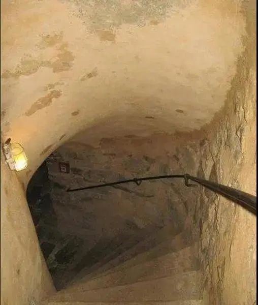 该地窖藏于地下6米深,想要进入其中,得先通过一个3.4米深、有梯子的竖井,再通过一个4.7米长的横井,其间,要经过装着锁具的6道铁门。