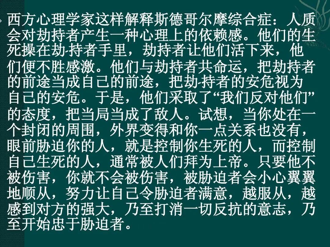 为了生存,只能选择顺从,而且选择后还能得到一些“恩惠”,在这样极端的条件下,很可能就会化解恨意,将恐惧变成依赖和感激,化施暴者为崇拜的对象。