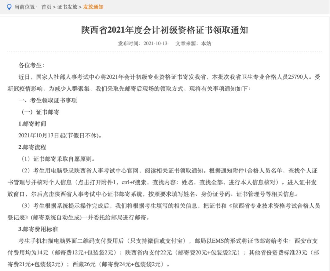 进入10月,初级会计证书的消息接连而来,继海南省发布领证通知后,陕西省也发布了21年初会证书的领取通知,赶快来看!