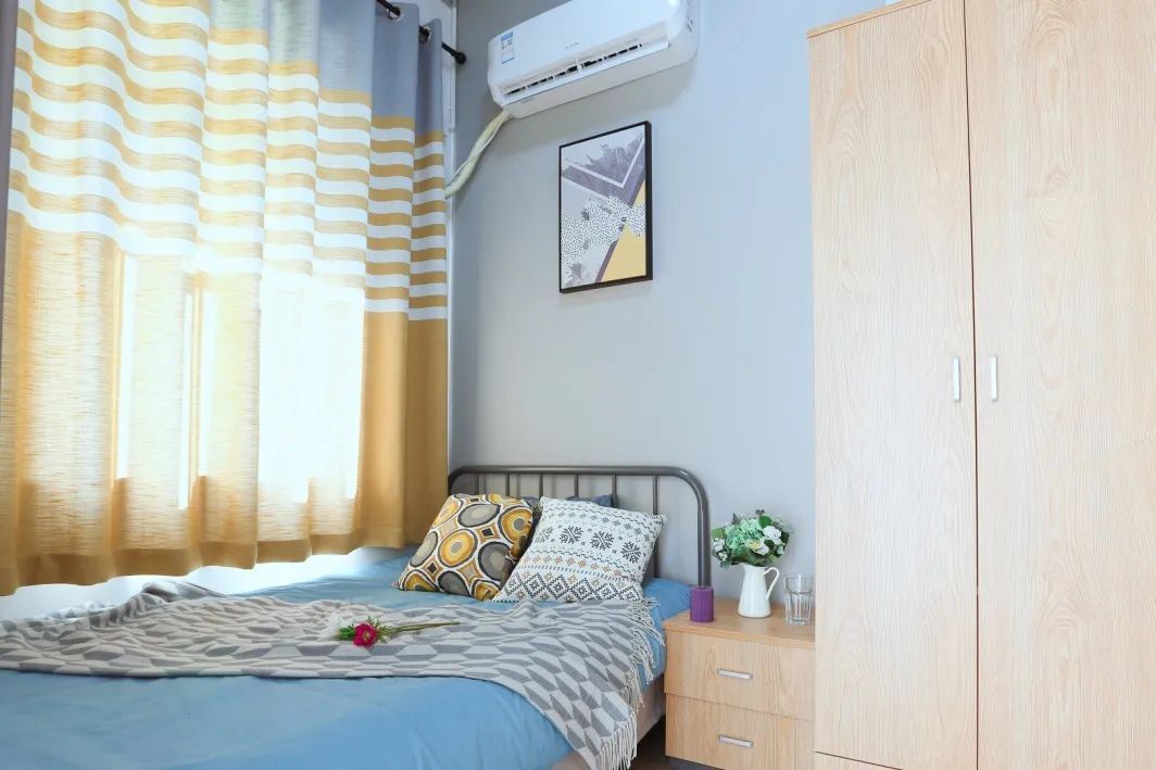 房间内配备床、书桌、椅子、衣柜、空调、热水器、消防五件套、窗帘等设施设备。根据房型不同(四人间或两人间),租金价格在751至1249元左右。