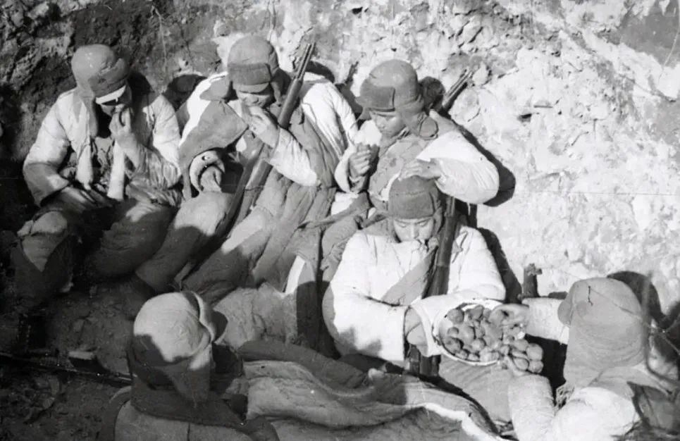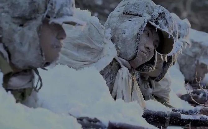 直逼零下四十度的极端天气,为了尽早到达指定地点,躲避敌人的飞机,他们来不及换上棉衣,再次登车出发。敌人的飞机一直在空中侦察,战士们只能将身体埋在深雪之下。侦察拍摄的照片,在敌人眼中,是空无一人,但下面是我们的千军万马。恶劣的环境,敌军行军缓慢,为了抢占先机,我军连夜赶在敌人的前面,死守静等。保持警戒,冻成冰雕,让敌人惊叹,更让我们落泪。