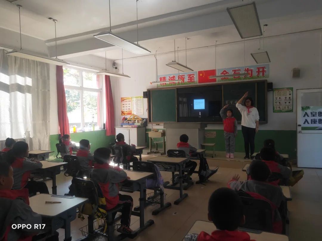 我校各中队在10月12日下午开展了“请党放心,强国有我”主题中队活动。一年级中队开展了队前教育主题活动,让一年级预备队员得到了一次深刻的队前教育,加深了孩子们对少先队组织的向往。其他中队重温入队誓词、少先队知识,增强了少先队员的光荣感和使命感,坚定了“请党放心,强国有我”的信念 激励他们以实际行动争做新时代好队员。
