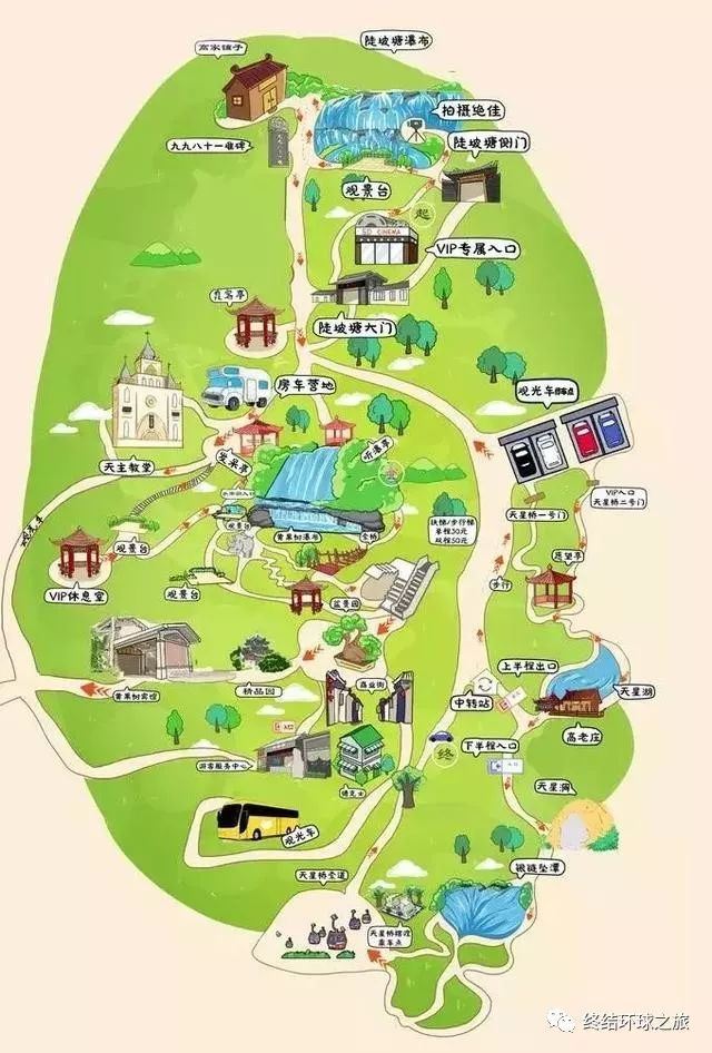 既然不再拥挤和赶时间,对于游览整个黄果树景区的路线就要好好的规划一番。在参考了快行漫游上诸多行程指导以及景区极富创意的导览图之后,最终决定了陡坡塘——大瀑布——天星桥的慢游之旅。