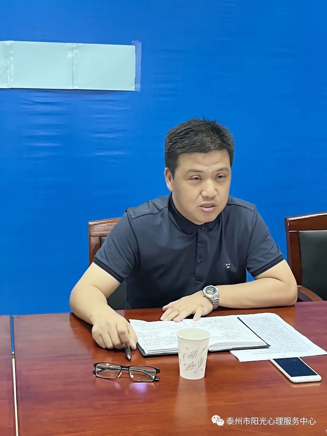高港区民政局侯科长作指导讲话。侯科长肯定了阳光心理服务中心项目组所做工作,提出了四点建议:总结提炼出成果,围绕实效修方案,抓住个案促整体,加大宣传增效应。侯科长的讲话让大家深受启发,连连表示赞同。