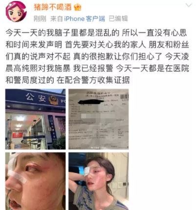 昨日,ks女网红猪有蹄发朋友圈,晒出自己被家暴照片,下手非常狠,眼睛肿的很厉害,并且还有血迹~