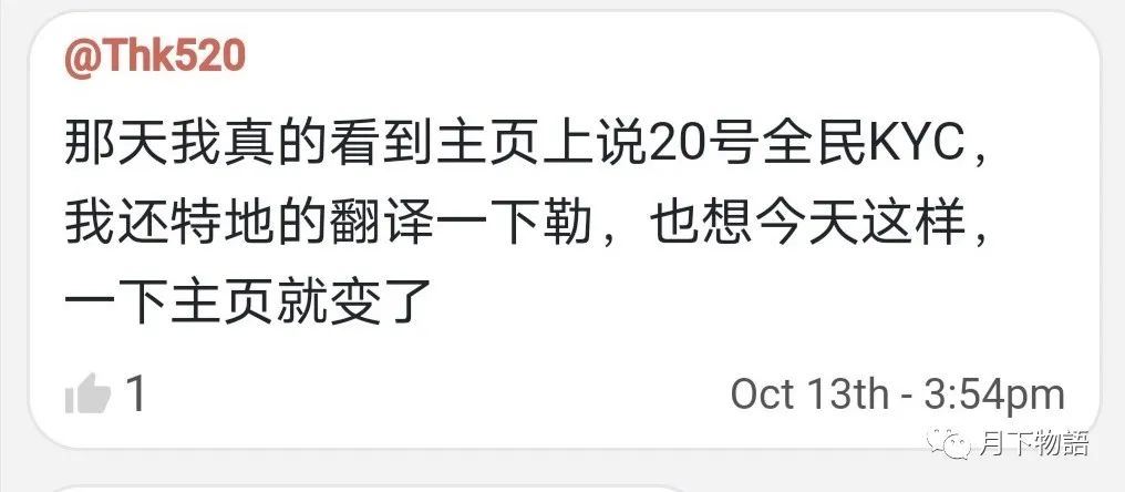 还有上次传出来的十月20号全面Kyc消息,可能就是这么来的。当然真假我也不知道,但是我们一起期待下次更新主页是KYC到来,的好消息吧