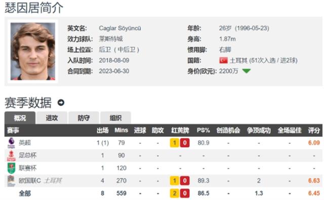根据意大利媒体《Sportitalia》记者隆加里的最新报道,罗马和马德里竞技将在夏季争夺莱斯特城的土耳其后卫瑟云聚,并可能以免费转会方式加入球队。