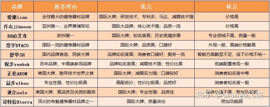 做了个整理,靠谱的跑步机品牌↓