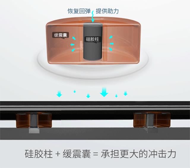 还有一种变形的气囊类型,比如正伦把硅胶柱放在跑板下面,吸盘放在跑步机底座的设计。因为吸盘在机器的底座,所以减震和噪音都得到了兼顾,是个不错的创意,实际体验有效。代表作:,身边朋友包括我自己自己试过后都觉得减震效果不错,中端跑步机。