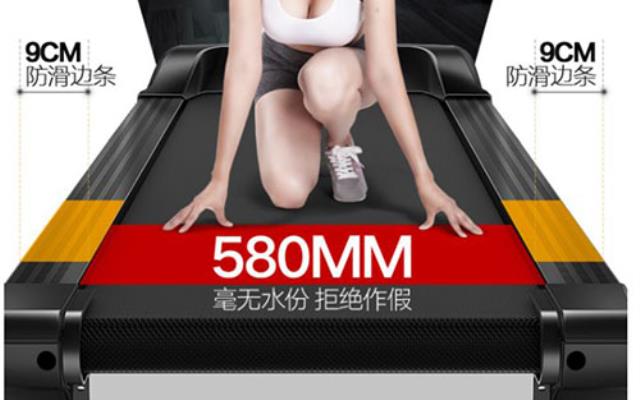 国标跑带宽度为1200mmx400mm,也就是说跑步机的最低要求是40cm的跑带宽度,有些厂家为了跑带宽度参数好看,会在宣传上做文章,不懂的也就被误导了。如这种宣传方法:
