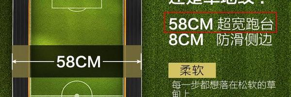 别的就是以为客户对产物不懂得,将一些概念隐约,好比把跑台的宽度说的很宽,却不提跑带的宽度,故此许多人就误򞅟򋰅把跑台当成了跑带宽度,去维权却吃了个哑巴亏。好比上图所示的数据为跑台的宽度而非跑带的宽度,假如依照 国标防滑踏板宽度不小于8厘米来说,两边共需减失落16厘米的宽度,58厘米-16厘米=42厘米,故此最终现实的跑带宽度为42CM。