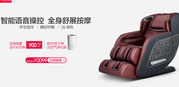 荣泰RT6810按摩椅,�。򧇫�家用全身全主动多功效天猫精灵电动太空奢华舱,价钱¥ 10999.00。