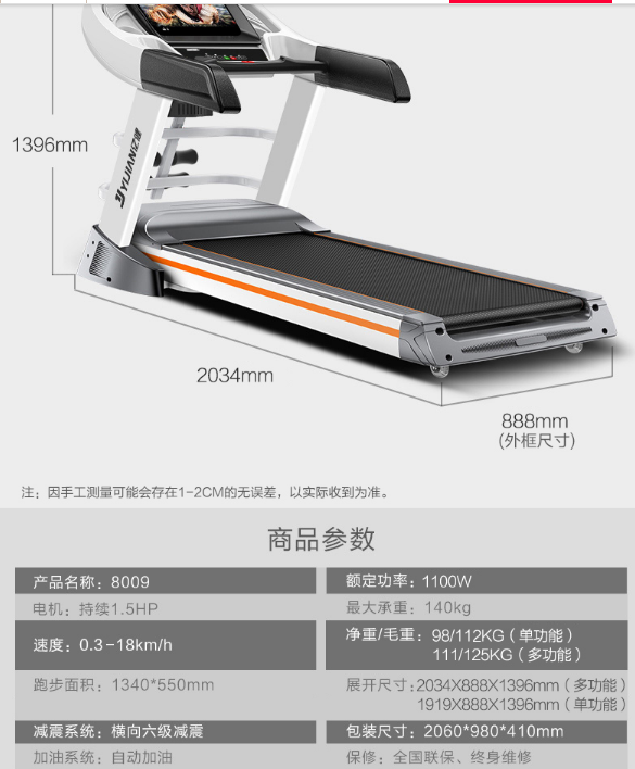 跑步机最年夜承重: 140kg