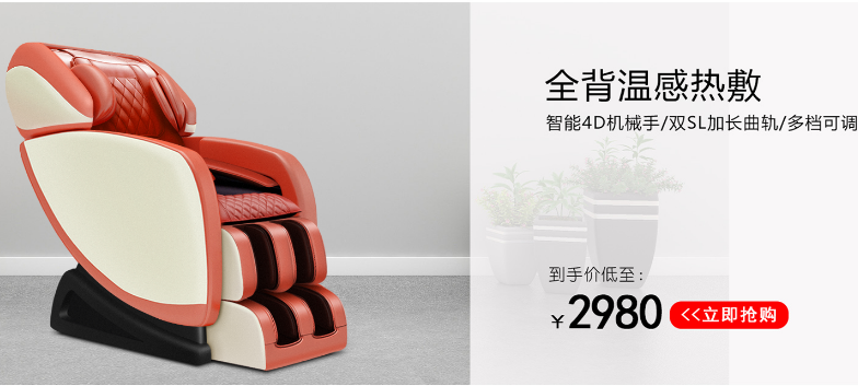 12.妈咪用了认为非常不错用,连脖子都能夹捏到,头和肩膀都可以按摩。小我认为性价比很高,比较了许多家,认为这款145cm双sl导轨的按摩椅是我发现的最廉价的一款。故此昨天又给公公婆婆买了一个。