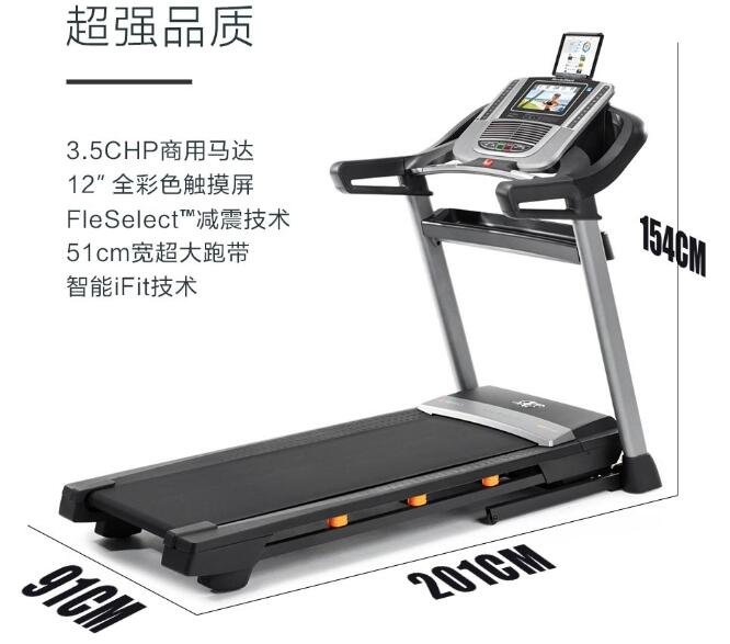 这款是爱康高端家用机型,综合配置都提升了很多,马达3.5CHP,152*51cm跑步区域,fleselect可调式专利减震。12英寸触摸显示屏,大量训练程序,最大速度22KM/H,0~12%坡度调节等全部都是高端配置。是爱康品牌万元最具代表性的产品,它满足了大家对高端家用跑步机几乎所有的要求。