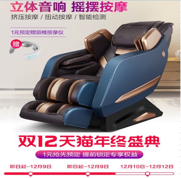 三。荣泰5860-适合小户型:价格:一般售价10599.00元??鄢呕萑凸何锊固?,12点12分双倍价格为7999.00元。优惠幅度为2600元。