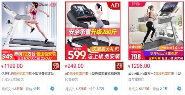 华为希林新友M7跑步机是一款小型折叠式跑步机,售价1098.00-1898.00元。该车型月销量5500+辆,累计评价29409辆,排名天猫销量前五。