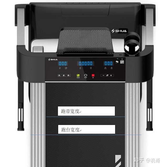 这里提醒一下,跑带宽度和跑台宽度是不一样的。同时我也建议要购入带扶手的跑步机必须考虑更宽的跑带,因为跑步会伴随甩臂等动作。不仅是跑带宽度,跑带长度也需要考虑进来,面积过小会让人跑步畏畏缩缩的,跑不畅快。