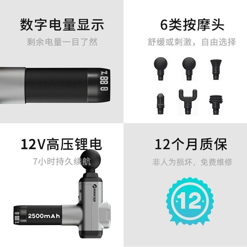 12KG压力,特制高功率电机,12V动力锂电池,能暴发 出猛烈的冲击,蒙受约12个KG的按压力度,再厚的年夜肌群,也能轻松渗入渗出。80mm配备矢量冲击节制技术,准确节制电机扭矩,有用推拿深度高达80mm,使你的年夜肌肉群轻松彭湃。动力锂电池(弗成拆卸)2500,数字电量显示。mAh动力锂电池,在带来强劲暴发 的同时,提供持久续航,让您随时随地受用懈怠韶光。