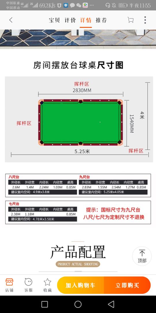 我家有买台球桌,我买了八百多那种,价钱有少的5类百多,(推荐不要买这种,质量差)开球馆一般买七八百块的,比拟恰当.价钱还有一千多一点的.上述价钱是美式桌的,还有英式的,比拟贵一点,那种是很长的.推荐你放台球的互相距离不要非常小.由于非常小干扰了人打球.我开过的,一般要用1000阁下的 到时刻别忘了让师傅给你调调球洞,轻易进球最好,那样打球的人会常?;莨说?,这是心得哦 也有800阁下的,也可以用 能摆若干让师傅给你看,他们相对有心得的 800上述重要是瞧你想买什么档次的了