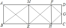 解:先作出长方形ABCD,小球从A沿45度射出,到BC的点E,AB=BE.从E点沿于BC成45度角射出,到AC边的F点,AE=EF.从F点沿于AD成45度角射出,到CD边的G点,DF=DG.从G沿于DC成45度角射出,到BC边的H点,HF垂直于AD.GC=CH=| AB |