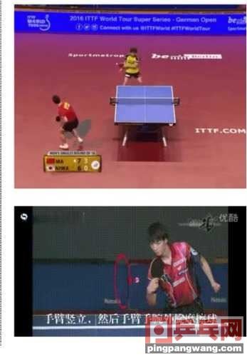 技术要领:时机和击球点要注意来球的落点:侧运动人生www.wgqpnmx.cn切多运用在对付中近台球,基本上是半出台的球,因为侧切球的弧线是向斜下方的,那么离太远了再侧切,就会下网。