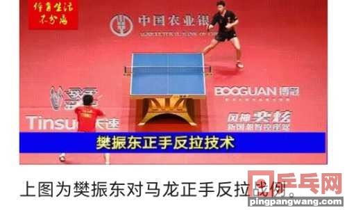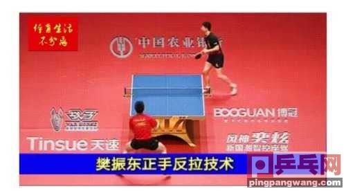 图为樊振东对马龙正手反拉战例。双方反手相持角度极大,马龙已退后,樊振东坚持中近台。来球速度极快,马龙运动人生xuejiazl.org正手发力很重,樊振东依然上升期触球,借力发力反拉。