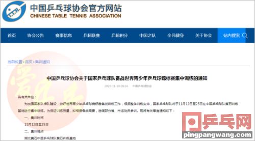 没错!但,乒超联赛属于“豪门盛宴”,云集的是类似马龙樊振东陈梦孙颖莎王曼昱这样的大腕,至少也是国乒中生代里的佼佼者,和不久前的全锦赛模式不一样。而且运动人生www.wgqpnmx.cn即便你是大腕,如果处于快退役的状态,找不到合适的东家,也无球可打(比如李晓霞和刘诗雯)。所以,打不上乒超的小将们,不如到国际赛场历练。那么,今年的乒乓球世青赛,派谁参加呢?目前名单还没公布,不过,不久前中国乒协官网上的一则通知,可以看出一些端倪来:这则通知是11月10日发布的,那期间,2022年乒乓球全锦赛战犹酣,刘主席为首的乒协领导们,除了观战,也在为国乒的未来谋划,“加强国家队梯队建设,做好世界青少年乒乓球锦标赛备战训练工作”。