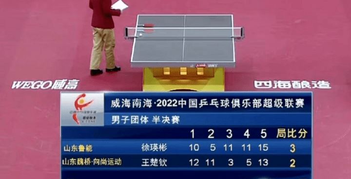 樊振东和许昕领衔的上海地产已经率先晋级决赛,等待他们的决赛的对手,而另一场半决赛中,山东鲁能大战卫冕冠军山东魏桥,比赛期间代表山东鲁能出战的王楚钦又输了,第二盘出战的他面对徐瑛彬,在2-0领先的情况下被对手上演大逆转好戏,2-3遗憾输球。