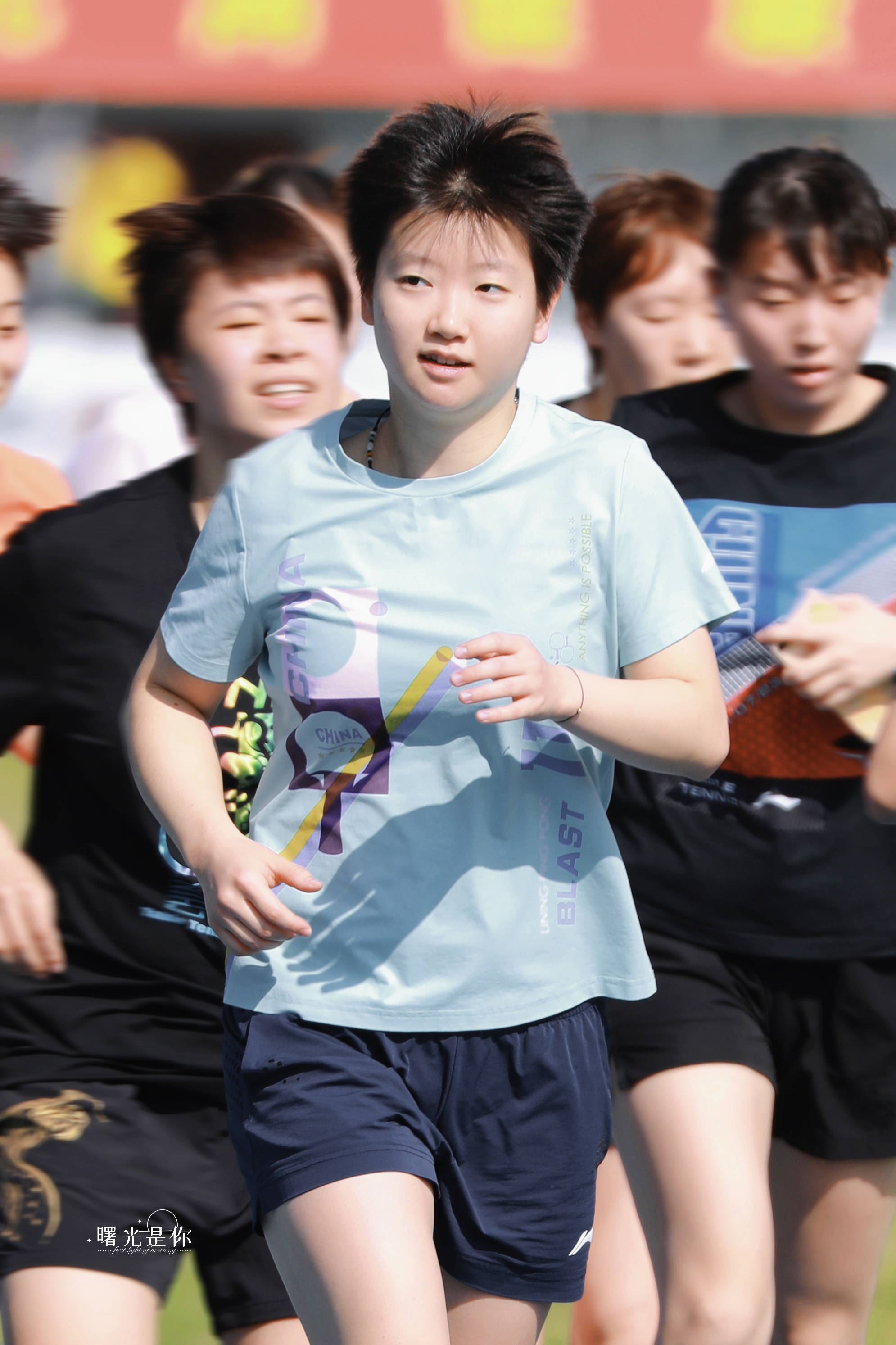 // 国乒冬训先练体能!孙颖莎边跑步边说话,马龙暂未出现梁 //
